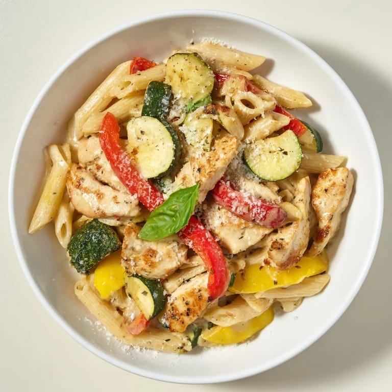 Pin It I grabbed five different vegetables from the farmers market one Saturday without a real plan, just drawn to the colors. Back home, staring at the bell pepper, zucchini, squash, tomatoes, and broccoli lined up on the counter, I realized they looked like a rainbow waiting to happen. Tossing them with pasta and chicken felt obvious in the best way. The dish came together faster than I expected, and the kitchen smelled like garlic and summer. Ive been making it ever since, tweaking nothing because it worked the first time.