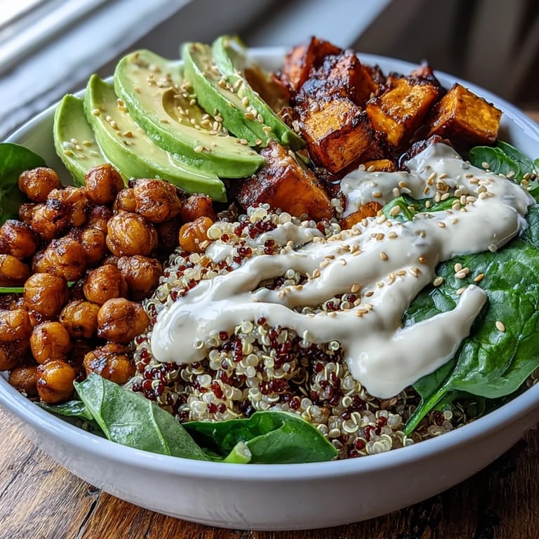Pin It Last winter, when everything felt heavy and gray, I started making these bowls almost daily. There was something about the colors—the burnt orange of roasted sweet potatoes against that creamy white sauce—that made my entire kitchen feel lighter. My roommate kept walking through asking what smelled so earthy and warm. Now it is the first thing I crave when my body needs a reset.
