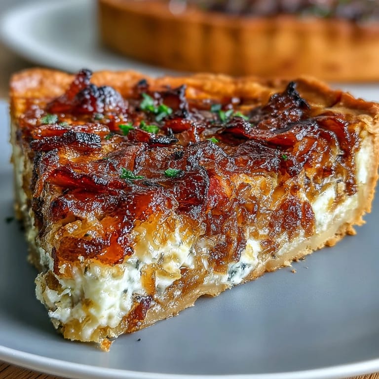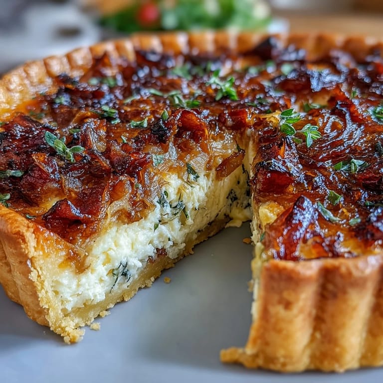 Pin It My neighbor once brought a slice of quiche to my door on a rainy afternoon, and I bit into it expecting something forgettable. Instead, the custard was silky, the onions tasted like caramel candy, and that smoky bacon made everything sing together. I stood there in my doorway eating the whole thing before asking for the recipe, and when she told me it was actually simple to make, I felt a little foolish for being so impressed. Now this quiche appears on my table whenever I want to feel like I've done something special without spending the day in the kitchen.