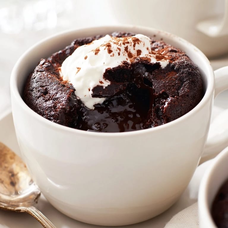 Use a microwave-safe mug with at least 12 oz capacity to allow the cake room to rise and cook evenly.