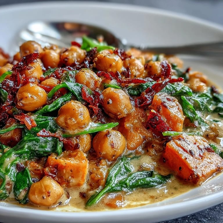 Pin It There's something about the smell of curry powder hitting hot oil that makes everything else fade away—the kitchen transforms into this warm, spiced sanctuary where time moves slower. I discovered this skillet curry on a gray Tuesday evening when I had almost nothing in the pantry except a can of chickpeas, some wilting spinach, and a sweet potato that had been sitting in the corner too long. What started as a quick salvage mission turned into one of those meals that feels both effortless and deeply satisfying, the kind that makes you realize the best dishes often come from working with what you have rather than what a recipe demands.