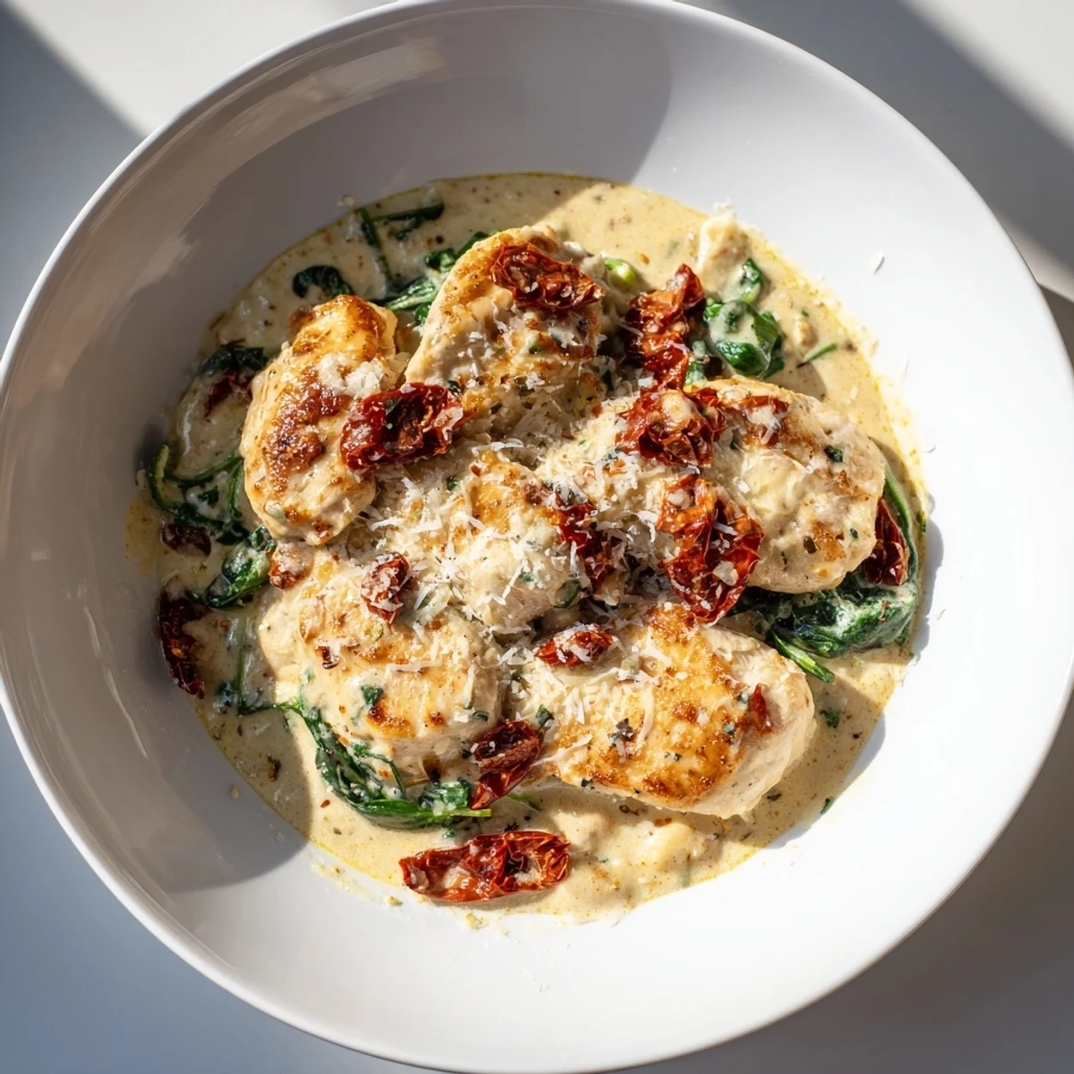 Pin It I discovered this dish on a rainy Tuesday when my neighbor mentioned she'd made something called Tuscan chicken and suddenly my kitchen smelled like garlic and cream. Something about the combination of sun-dried tomatoes and spinach felt both fancy and effortless, so I decided to recreate it that same evening. The first bite convinced me this would become one of those recipes I'd return to again and again, the kind that feels special but doesn't demand hours of prep work.