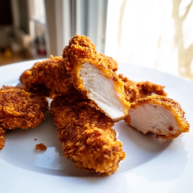 Pin It My neighbor handed me a plate of golden fried chicken tenders through her kitchen window one summer evening, and I've been chasing that exact crispness ever since. There's something about that perfect shattering crunch followed by impossibly juicy meat that makes people forget their manners. After years of trial and error—too soggy, too dry, too bland—I finally cracked the code with a buttermilk bath and a double-dip flour trick. These tenders became the thing I make when I want to impress without breaking a sweat. Now they're the first thing my family requests when I ask what's for dinner.