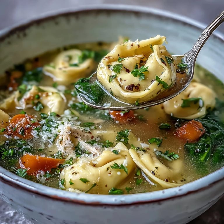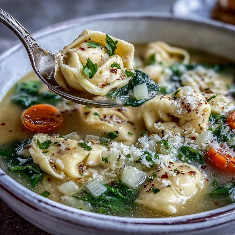 Pin It The first time I made tortellini soup, I was searching for something warm on a particularly bitter January evening. My fingers were still cold from scraping ice off the car, and I needed comfort in a bowl. The combination of pillowy cheese-filled pasta floating in that silky, aromatic broth immediately transported me somewhere warmer. What surprised me most was how something so satisfying could come together with so little effort.
