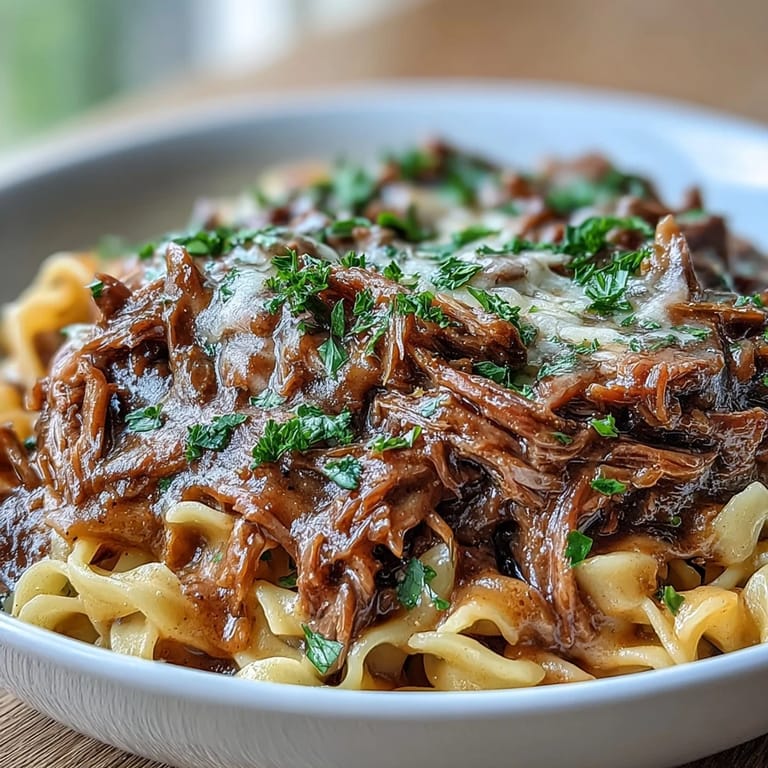 Pin It There's something magical about walking into your kitchen after eight hours and being hit with that wave of caramelized onion and tender beef—it stops you in your tracks. My neighbor Maria knocked on the door one winter afternoon, following the smell down the hallway, and I had to laugh because I'd been so absorbed in a book I'd completely forgotten what was happening in my crockpot. That's when I realized this dish has a quiet power: it transforms the most humble cuts of beef into something that tastes like you've been cooking all day, when really you just threw it together that morning. The combination of French technique with American comfort food felt like the best kept secret, and now it's become my go-to when I want to impress without the stress.