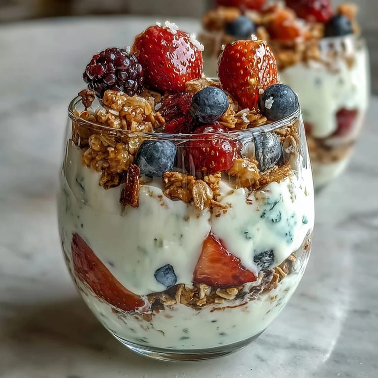 This breakfast works best when the yogurt and berries are cold straight from the fridge and the granola is room temperature or slightly cool. The contrast is what makes it feel special—that cool, creamy bite followed by a warm, crispy crunch. If you're making this the night before, keep the granola separate and add it in the morning, or it'll turn disappointingly soft by the time you eat it.