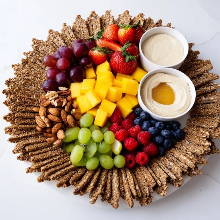 This works equally well as a pre-dinner appetizer or an afternoon grazing board, and it's your secret weapon when you want to impress without cooking. Pair it with crisp white wine, sparkling water with lemon, or even light iced tea. For a vegan version, swap the yogurt dip for plant-based alternative and use maple syrup instead of honey.