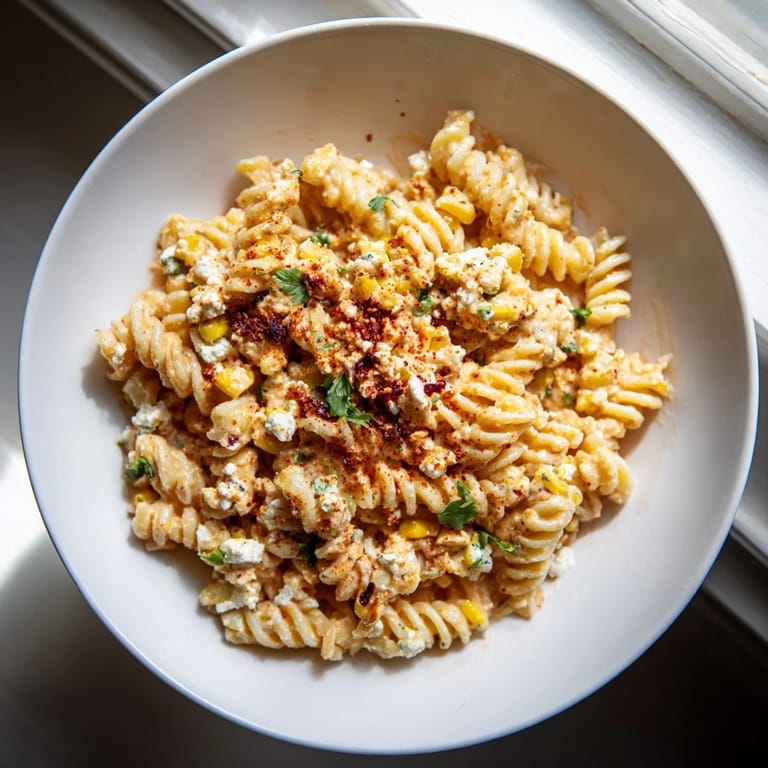 Pin It My neighbor Maria brought this to a potluck on a sweltering July evening, and I watched people go back for thirds without hesitation. The first bite hit me with this perfect collision of creamy, tangy, and just spicy enough to make you sit up and pay attention. She told me later it was born from her craving for elote but needing something that felt like actual dinner, so she tossed it with pasta and basically changed my summer cooking forever. Now I make it whenever I want to feel like I'm at a backyard gathering even on a random Tuesday.