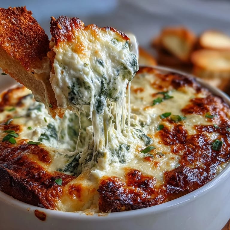 Pin It One St. Patrick's Day, I brought this to a potluck where someone had already made a traditional spinach and artichoke dip in a regular dish. Mine was gone in twenty minutes; theirs lasted the whole afternoon. People love eating straight from the bread bowl because it feels like an experience, not just another appetizer on a table.