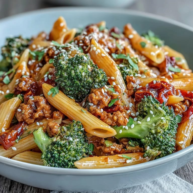 Pin It Brighten up your dinner routine with this Sweet & Spicy Turkey Broccoli Pasta. This quick and vibrant dish brings together lean ground turkey and crisp-tender broccoli florets in a glossy, flavorful sauce that perfectly coats every penne noodle. It is an easy American Fusion meal that is both satisfying and dairy-free, making it an ideal choice for a wholesome weeknight dinner.